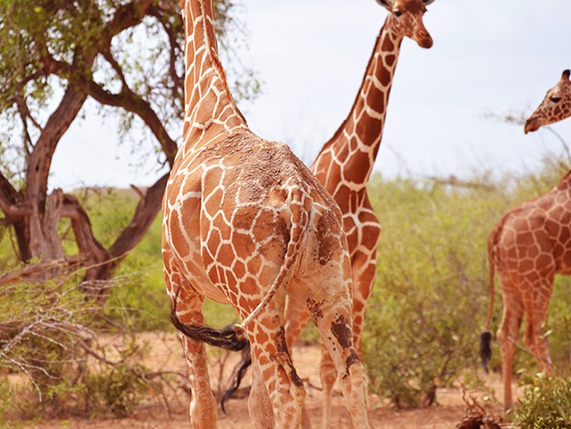 However, these distances are slightly longer than the long term mean distances. We, therefore, plan on involving more water trucks and providing water on a weekly basis. We have also been providing high quality feeds to wildlife and livestock. This is expected to improve livestock health and increase their productivity, especially in milk production. This will greatly benefit the local communities by reducing inter-clan conflicts arising from migration in search of pasture, and invasion of wildlife protected areas. Following our assessment and identification of water access points along the river, we are currently lobbying with the Garissa County Government to open these wildlife access corridors that would greatly increase access to water by wildlife. Finally, the body condition of livestock is worsening due to lack of sufficient pasture making them susceptible to diseases. There have been no major disease outbreaks but of concern is the increased cases of endemic Bovine Trypanosomiasis especially in Ijara and Sangailu and isolated cases of CCPP. This is a worry because at least 24 hirola were killed by the tick-borne cattle disease (East Coast fever) and Trypanosomiasis in 1998. Without urgent intervention, this disease could potentially spill over to hirola and cause mass mortalities. As we monitor this situation, we are proposing a livestock vaccination exercise to stop the spread of this infectious disease. Similarly, we have noticed increased cases of giraffe skin diseases associated with malnutrition and other environmental stresses. We witnessed similar skin diseases during the 2019 drought that resulted in the mortalities of 21 reticulated giraffes.
