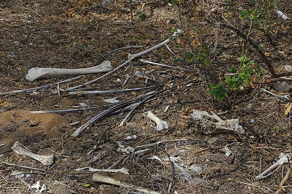 For example, Mansabubu, one of the mapped hotspots was littered with evidence of brutality that includes broken limbs, wounds from poisonous arrows and snares, and machete scars while in other instances we discovered heads, skins, and hoofs of already butchered animals.
